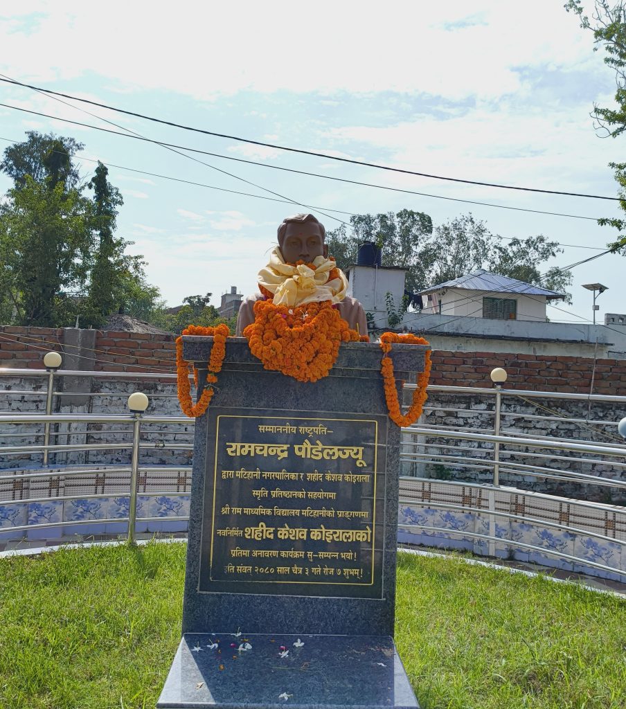 आज मिति २०८२ साल श्रावण ३१ गते शनिवारका दिन मटिहानीमा लोकतान्त्रिक आन्दोलनका अग्रणी योद्धा तथा अमर शहीद केशव कोइरालाको ५१ औं स्मृति दिवस विशेष कार्यक्रमका साथ मनाइयो।